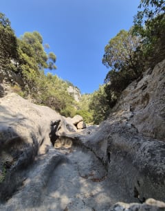 Cette boucle de cinq kilomètres, assez courte en distance mais présentant de nombreux passages entre les rochers, permet de crapahuter dans ces gorges sauvages au fil de l'eau et des grottes, entre Ollioules et Evenos.