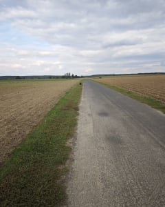 La moitié du parcours sur les chemins le long des champs, inaccessibles aux voitures. L'autre moitié sur la route dans la campagne. De légères montées, une paire de baskets suffit.