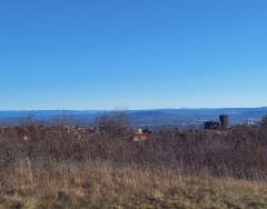 Vue sur la chaîne des puys, sur la plaine de la limagne et les agglomérations de Clermont Ferrand et Riom.