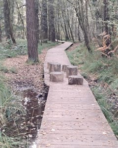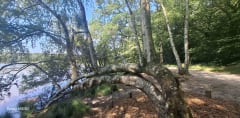 Très joli et agréable parcours autour de l’étang de Paimpont. Possible du 1er avril au 30 septembre. Par endroits, des gros plots pour éviter les endroits humides ou des passerelles en bois. C’est très bien aménagé pour rendre la balade facile aux endroits plus humides. Et toujours la jolie magie de la forêt.