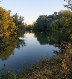 Balade le long de la Sèvre Niortaise. Petit plus bac à chaîne pour traverser et on arrive dans une petite paillotte pour boire un verre.