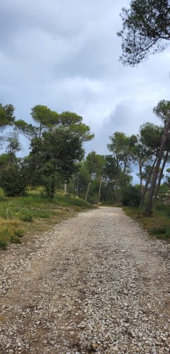 Départ du chemin en bas du parking. Tout droit sur le chemin sur environ 2km puis prendre le grand chemin qui monte sur la droite pendant à peu près 1km et descendre sur la gauche jusqu'à la barrière puis à droite jusqu'à la prochaine barrière sur la droite prendre ce chemin toujours tout droit pendant un peu plus de 2km et remonter à droite le long des oliviers sur 500 - 600 m et remonter à gauche jusqu'au parking.