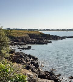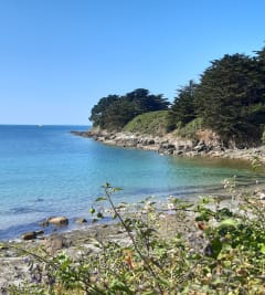À seulement cinq minutes de traversée en bateau depuis Port-Blanc, une île vous tend les bras pour une randonnée iodée : l'île aux Moines, avec la pointe de Brouel. Surnommée la "perle du golfe du Morbihan", elle est la plus grande des îles du golfe du Morbihan et charme par sa douceur de vivre. Avec ses 5 kilomètres de long et sa forme de fer à cheval, elle se découvre idéalement à pied ou à vélo, car la circulation automobile y est limitée. Pour une visite à la journée ou des vacances paisibles, partez en randonnée sur l’île aux Moines et la pointe de Brouel avec notre app de rando Decathlon Outdoor pour découvrir l'une de ses plages ou en faire le tour, via son sentier côtier.