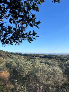 Belle balade si : Vous ne suivez pas parcourt. Il vous fera contourner de très beau endroits, comme les champs d’oliviers. Je vous conseil de suivre le sentier des vergers. Vous passerez par de charmants endroits comme des terrasses en restanques où sont cultivés de jolis oliviers.