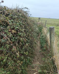 Partez de la plage pour monter en haut de la falaise, la longer et revenir à travers champs et village. Des bunkers, une vue du village magnifique et l air de la mer