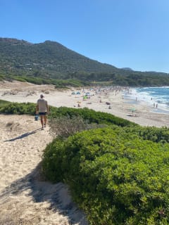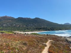 Balade dans les sentiers ensablés aux abords des plages de Bodre et Ghjunchetu. Très belles plages de sable blanc avec de magnifiques bois flottés sur la plage de Ghjunchetu.