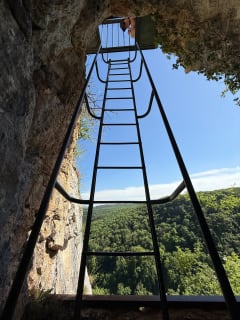 Belle boucle, on long la rivière, puis on monte (attention pour ceux qui marchent peu la montée est raide et caillouteuse), puis on arrive sur la falaise avec de belles vues et ensuite de la forêt ombragée en passant par le site gallo romain.