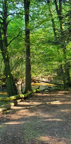 Facile d’accès et on peut garer sa voiture. Chiens peuvent être en liberté On commence par un chemin forestier pour ensuite descendre à droite vers la forêt qui nous mène tout en bas à un ruisseau pour enfin remonter (pour se faire les cuisses!!!) jusqu’au point de départ. Balade agréable !