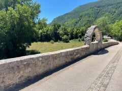 Blottie entre le Causse de Sauveterre er le Causse Méjean, cet itinéraire plonge le randonneur dans des paysages cévenols typiques comme les châtaigneraies ou les vestiges antiques de la présence humaine comme le pont médiéval d’Ispagnac ou le pont ogival de Quézac.