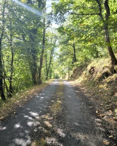 Au départ , montée raide au milieu des châtaigniers , puis arrivé au sommet descente sur petit sentiers caillouteux et boueux , un peu déçu pas de point de vue