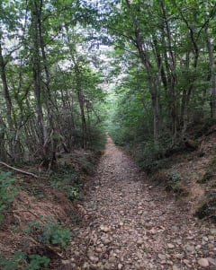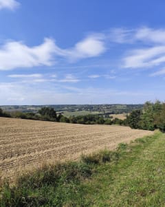 4km avec pas mal de dénivelé, chemin creusé par l'eau par moment. Balade entre champs et forêts très agréable avec de belles vues. Très bien pour un début avec mes deux filles 7et 9 ans