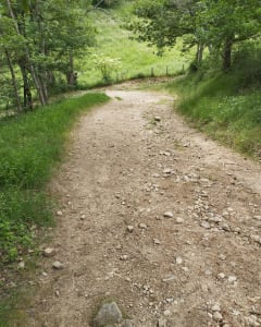 Côte caillouteuse sur un quart de chemin . batons bienvenus