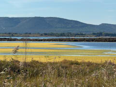 Balade sans intérêt… première partie longeant le canal très monotone … puis dans la partie entre mer et étang l’on se retrouve au milieu des nudistes sur la plage et dans les bosquets côté étang … bref pour moi pas le but d’une balade !! Je préfère nettement celle côté parking très agréable entre étang et pinède