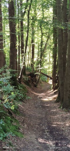 La balade est superbe mais le chemin dans le bois est bloqué par une barrière avec barbelés, de la graisse (oui oui pour dissuader les plus téméraires) et des caméras.