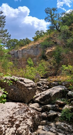 Une agréable balade familiale sans difficulté. Si vous avez des chiens, prévoir eau+++ et un temps venteux (en juillet, plus d'eau exploitable sur le chemin). On traverse des clôtures électriques qui s'ouvrent (troupeau de chevaux). Ils sont habitués et pas agressifs du tout, juste curieux. Attacher les chiens pour traverser sans déranger et bien refermer derrière soi.😉La garrigue est magnifique🤩 la mousse, les beautés géologiques, culturelles (grotte du loup fermée --> panneaux explicatifs)