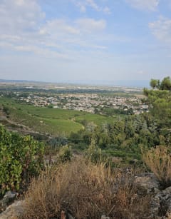 Passage dans les vignes de Saint-Péray et de Cornas avec des vues magnifiques sur la vallée du Rhône et sur le château de Crussol.