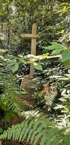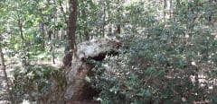 Parcours entre châtaigniers et sapins.a 3km du départ à droite un joli petit dolmen puis à 200m après le dolmen à droite dans la végétation une petite croix.