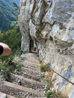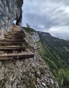 Randonnée accessible, parti vertigineuse câblé (attention aux personnes soumis au vertige). Première parti avec racines en forêt puis deuxième avec marches plus roches. Début de la randonnée au parking. Vu panoramique sur la vallée.