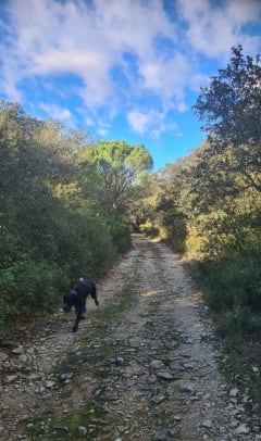 Très jolie balade en garrigue + dfci, deux passages sur routes passantes dommage, mais pas très long. Aucune difficulté ! Ok chiens mais attention aux propriétés avec chevaux, ânes et chiens.