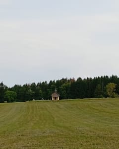 Itinéraire facile. 100m de dénivelé. Accessible tout public. Départ d'un parking puis chemin le long de champs, à travers la forêt. Paysage : vue sur le lac au loin, les montagnes. On peut manger à la chapelle : petits bancs. Table d'orientation à côté avec des panneaux explicatifs sur les eaux du plateau.