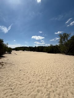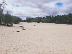 Parcours sympa car il est composé de chemins qui alternent rochers, sable et terre. Vous pouvez pousser jusqu’au Belvédère de la bosse 25 en sortant du mémorial (attention ça glisse en descendant…). Une grande partie du parcours se fait dans le sable !