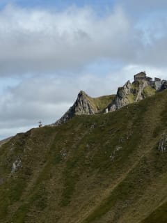 239, c’est le nombre de marches pour monter au puy Mary, l’un des sommets des monts du Cantal. Il fait partie de la commune du Claux, mais est en réalité situé au point de rencontre de quatre communes du Cantal : Le Falgoux, Le Claux, Lavigerie et Mandailles-Saint-Julien. Faire l’ascension du puy Mary ne relève pas de l’impossible grâce à son sentier aménagé (on parle même d’une rando facile), mais il se pourrait que vous ressentiez la raideur de la pente dans les mollets ! Pour vous faciliter la tâche, on vous a concocté un mélange de plusieurs randonnées d'Auvergne, à choisir selon votre niveau. Et pour faire encore plus simple, laissez de côté votre carte et faites-vous guider par notre appli gratuite ! En route pour ce volcan cantalien !
