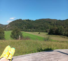 Boucle bien balisée n 4 faites en sens inverse sur conseil de la personne de l office de tourisme, pour un mode balade. partie du camping la Pierre et revenue par une petite route détour à la chapelle joli point de vue Arrêts aux différentes halte paysage, le banc sonore (même s il ne marchait pas) au niveau de l ancienne monastère st colomban vaut le détour