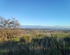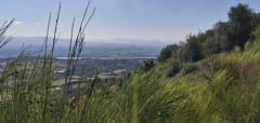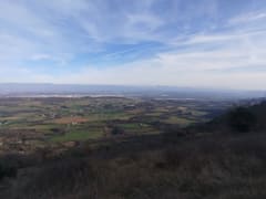 Vue des crêtes de Toulaud vers la vallée du Rhône et les Alpes. Parkings au village et point d'eau potable. Sentier escarpé en début de randonnée au niveau du parking, mais évitable par la route sur les premières 5min. Prévoir des chaussures de randonnée.