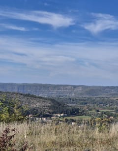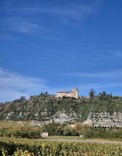 Après une petite montée, on gagne les chemins de crêtes dominant les méandres du Lot. de là, le regard s'accroche aux reliefs et aux châteaux dominant la vallée. Nos pas se poursuivent à travers les vignes qui ont fait la richesse de la région.