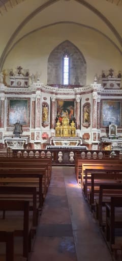 Départ du parking de l'esplanade de l'Europe qui est gratuit. Déambulation dans la ville pour voir le lavoir, l'abbaye, le platane centenaire avec sa fontaine. Jolie petite randonnée assez facile, ça monte au début mais ensuite ça va. La carrière n'es plus en activité mais on peut voir des sculptures après la carrière. Petit détour par la jolie chapelle de Notre dame du CROS. Sentier très bien balisé.
