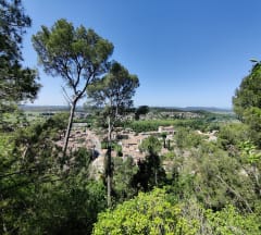 Longer la crête de la colline en direction de Villevieille, voir le vieux village et le beau château.