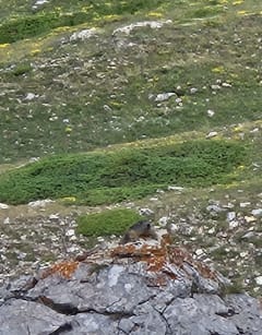 Ballade facile avec un début sous les pins puis la montagne se découvre pour arriver jusqu’au petit lac Quelques marmottes nous ont saluées