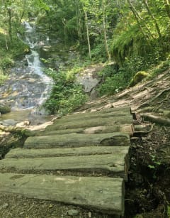 C'est plus une balade,chemin type voie verte,monter raide sur 250 mètres sur petite route goudronnée qui mène ensuite sur sentier et cascade. Bien dans l'ensemble,ombragé sur quasiment tous le parcours,parfait pour les chaleurs.