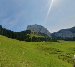 Balade difficile avec des enfants mais possible. Nous nous sommes arrêtés à l'alpage avec un joli paysage. Au retour nous avons suivi le chemin pour rentrer par le promontoire mais avons dû rater une bifurcation. La descente était donc raide mais nous a permis de rejoindre l'itinéraire initial.