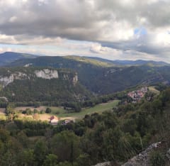 Holala, cette boucle de 9 kilomètres au départ de Chaley, village situé dans la montée entre Tenay et Hauteville-Lompnes sur les bords de l'Albarine, c'est de l'or en barres. Les sensations sont uniques lorsqu'on découvre la vue sur la vallée depuis le Rocher du Grand Sangle, à 840 mètres d'altitude! Munis de bonnes chaussures de marche, d'un pantalon pour les ronces et de bâtons pour bien grimper, on crapahute dans cette belle région pour découvrir tous ses trésors de patrimoine naturel et d'Histoire.