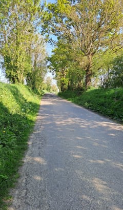 Beaucoup trop de routes (même si elles sont petites et quasiment pas de voitures) pour moi: un total cumulé de 5,3km. Un seul véritable chemin creux. Peut convenir pour certains (pourquoi pas un parcours de course)