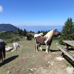 Magnifique balade avec des chevaux en liberté très belle vue. Début de la ballade montée raide et à l arrivée aussi mais vaut le détour