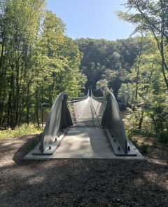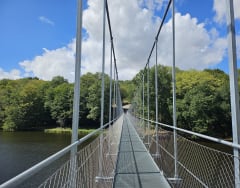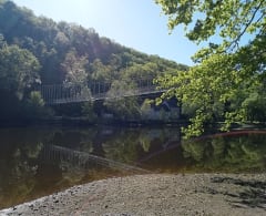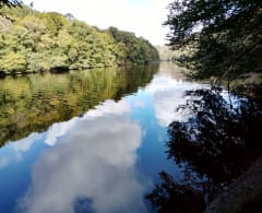 Circuit le long de la Creuse autour de Cuzion. Chemin de Saint-Jacques de Compostelle qui vient de Vézelay et passe par Eguzon. Le chemin passe par la passerelle himalayenne entre la plage de Montcocu et le chemin dit "du Cassecou". Très praticable tout du long avec quelques passages très humides et il offre deux superbes points de vue sur la vallée de la Creuse avec les tours du château de Châteaubrun en perspective.