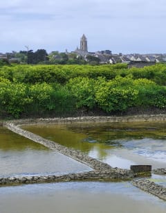 Un circuit de 5 km500 qui vous permettra de découvrir 4 villages situés au bord des marais salants. Kervalet, sans doute l'un des plus beaux villages paludiers de la région, est construit sur un rocher émergent des marais salants où vous trouverez de nombreuses maisons en pierres typiques de l'habitat paludier. Trégaté, bâti en hauteur sur un rocher. Vous découvrirez les maisons de pierre, son fournil, sa fontaine, son calvaire en granit ou encore ses superbes lucarnes du XVIIIème Siècle. Kermoisan et son célèbre château d'eau recouvert d'une fresque représentant le travail des paludiers. Le village s'agrandit de coquettes maisons, avant de découvrir un paysage verdoyant et sauvage quadrillé de murs en pierres sèches. Roffiat où les maisons sont soudées les unes aux autres pour se protéger du vent. Admirez sa croix en bois, ornée de treize cœurs rappelant les douze apôtres et le Christ ainsi qu'une statuette de Notre-Dame du Bonheur qui recevait autrefois la visite des jeunes filles