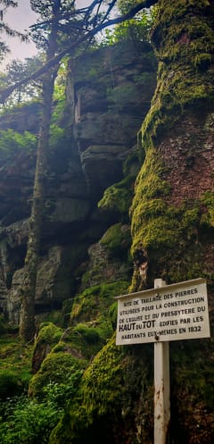 Belle petite promenade en sous-bois sur des chemins parfois escarpés, mais toujours assez facile. Des panneaux explicatifs tout au long du chemin (merci au Club Vosgien).