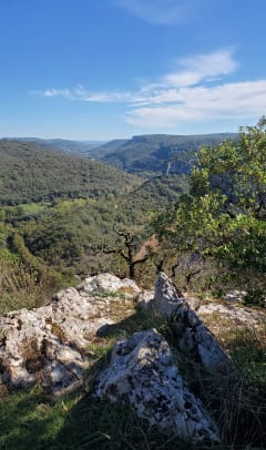 Superbe promenade autour du cirque de Bône à partir du parking de la gare à St-Antonin-de-Nobleval. Faible dénivelé - difficulté moyenne (au début la montée est un peu technique mais sécurisée avec un câble)