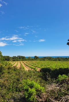 Petit parcours au départ de Château Rouquette. Découverte de l'ancien domaine avec ces vignes. Point de vue entre ciel, mer et terre... agréable avec des passages ombragés, le chant des cigales l'été.