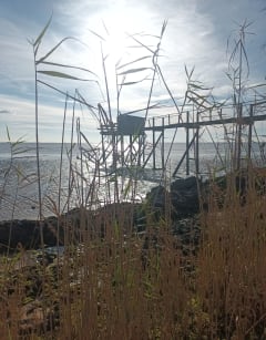 Parcours à faire à marée basse. Départ jetée de piedemont. Prendre le chemin côtier à gauche vers les 2 derniers pontons. Après 400m descendre sur la plage. Marcher sur la plage. Remonter sur le sentier pour passer la 1ère écluse . Redescendre sur la plage et aller jusqu'à l'écluse de montportail. Passer par l'écluse. Et continuer jusqu'à la côte de montportail. Aux piquets à mouettes. Pause pique-nique et même parcours retour.