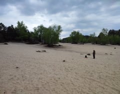 En suivant le parcours des 25 bosses que l'on quitte pour passer dans les rochers, on peut découvrir d'anciens abris de carriers, pour finir dans le sable.