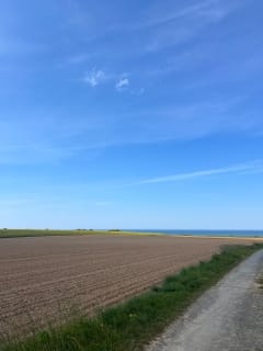 Itinéraire sans grand intérêt réalisé en 2h40 malgré une boucle supplémentaire de 2 km afin de parcourir la batterie et de longer les falaises Absolument aucun intérêt historique, on se contente de traverser des champs, et on ne se rapproche même pas des falaises pour observer les vestiges du port … décevant
