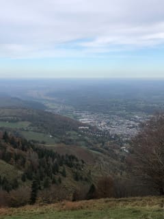 Départ de La Croix de Manse sur les coteaux, à travers des bois vers un petit sommet avec une immense vue…
