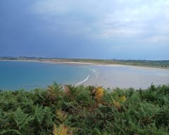 Départ en suivant le GR34 avec vue sur le Tas de Pois. Après le tour de la Pointe de Dinan, retour par des chemins à travers la lande. Découvrez la Pointe de Dinan, un joyau caché de la presqu'île de Crozon, en suivant cette petite balade le long de la côte. Depuis la belle plage de Goulien, suivez le GR34 pour profiter d'une vue imprenable sur le Tas de Pois. Après avoir fait le tour de la Pointe de Dinan, retournez par des chemins à travers la lande pour découvrir des paysages sauvages et préservés. Cette courte randonnée offre une vue magnifique sur la mer d'Iroise, de la Pointe de Pen Hir jusqu'au Cap de la Chèvre. La balade commence par la visite de l'immense plage de Goulien, puis se poursuit par un cheminement vallonné à travers bruyères et fougères. Au bout de la pointe, vous pourrez admirer une grande arche naturelle. Pour le retour, vous pouvez choisir de suivre le même itinéraire ou de rentrer par l'intérieur des terres.