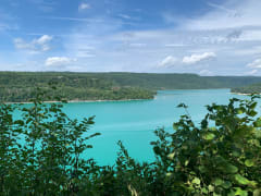 Entre base de loisirs et nature préservée, plages de sable fin et sentiers de randonnée balisés, le lac de Chalain réunit les amateurs de rando et de pédalo autour de ses eaux incroyablement vertes, résultat d’un processus géologique enclenché il y a plusieurs milliers d'années. Au pied du premier plateau du massif jurassien, ce lac d’origine glaciaire étale ses 232 hectares de lagon turquoise entre Fontenu, Marigny et Doucier, falaises calcaires et forêt de résineux. La beauté du site naturel, le faible dénivelé et la possibilité de se baigner en font une destination rando familiale parfaite.
