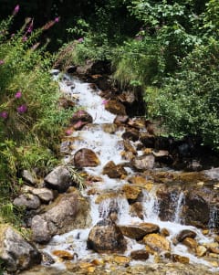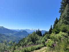 On remonte la station pour commencer le sentier proprement dit au niveau du parking des Pérelles en direction du col de Montjoie dans un premier temps puis du Replat. Arrivés au Replat, reprendre le sentier des Hameaux pour revenir au cœur de la station Place de la Madeleine. C'est un plaisir de traverser la végétation et les ruisseaux de montagne, une fois en marchant sur les pierres, une fois par un petit pont.