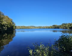 Garez-vous sur le côté avant l'étang et laissez vous guider par l'appli et le marquage d'abord jaune et rouge puis jaune.